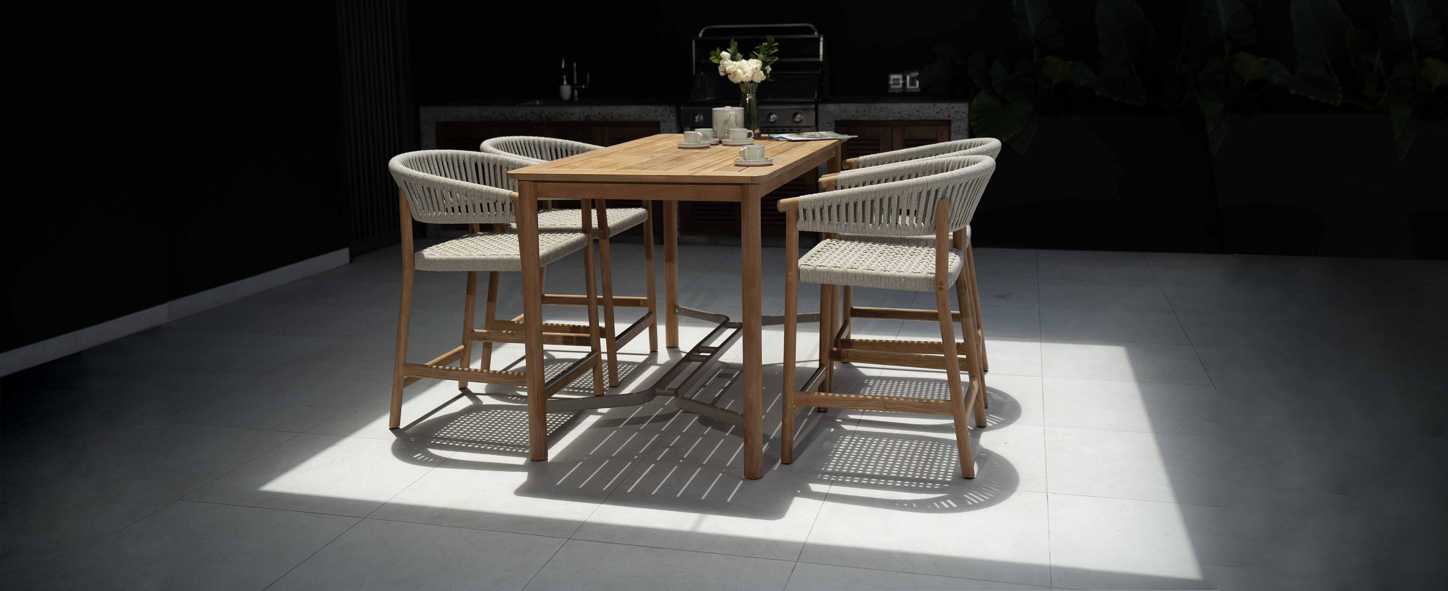Seamlessly combining extruded aluminium with teak and rope, Povl Eskildsen’s Stella is a contemporary design that has his signature understated design language and comfort at heart.