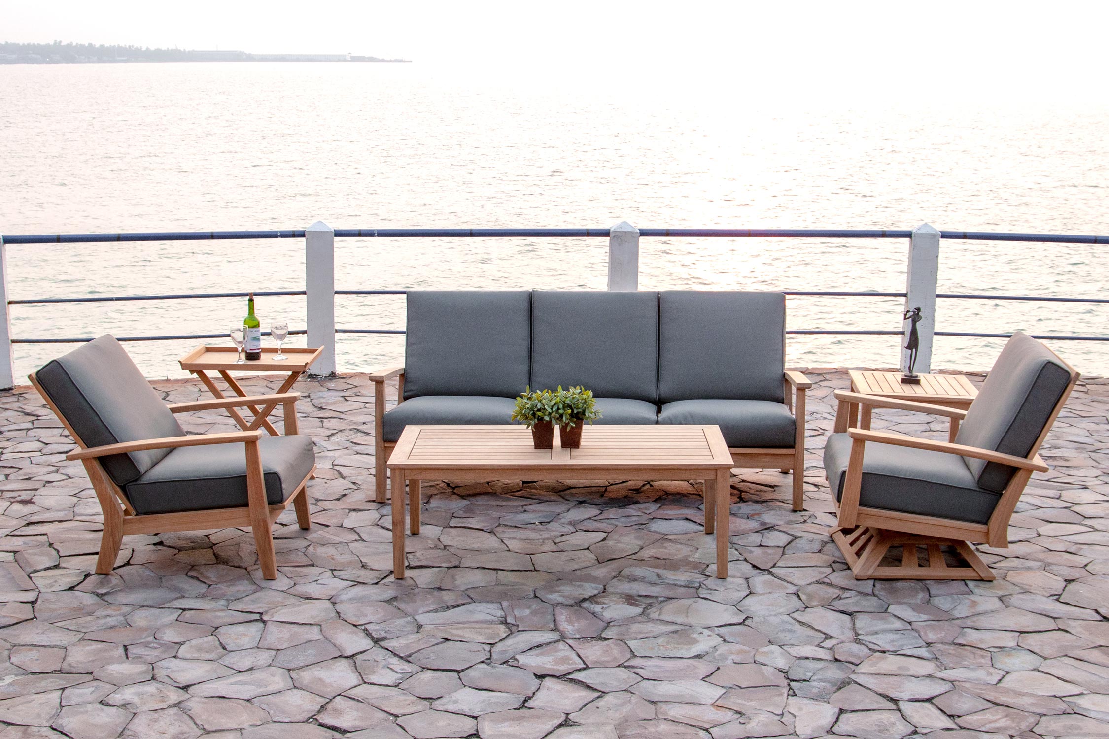 inches cm D 35.5 90 W 79.0 201 H 35.5 90 Arm 23.3 59 Seat 17.1 43 - Frame Materials: Teak